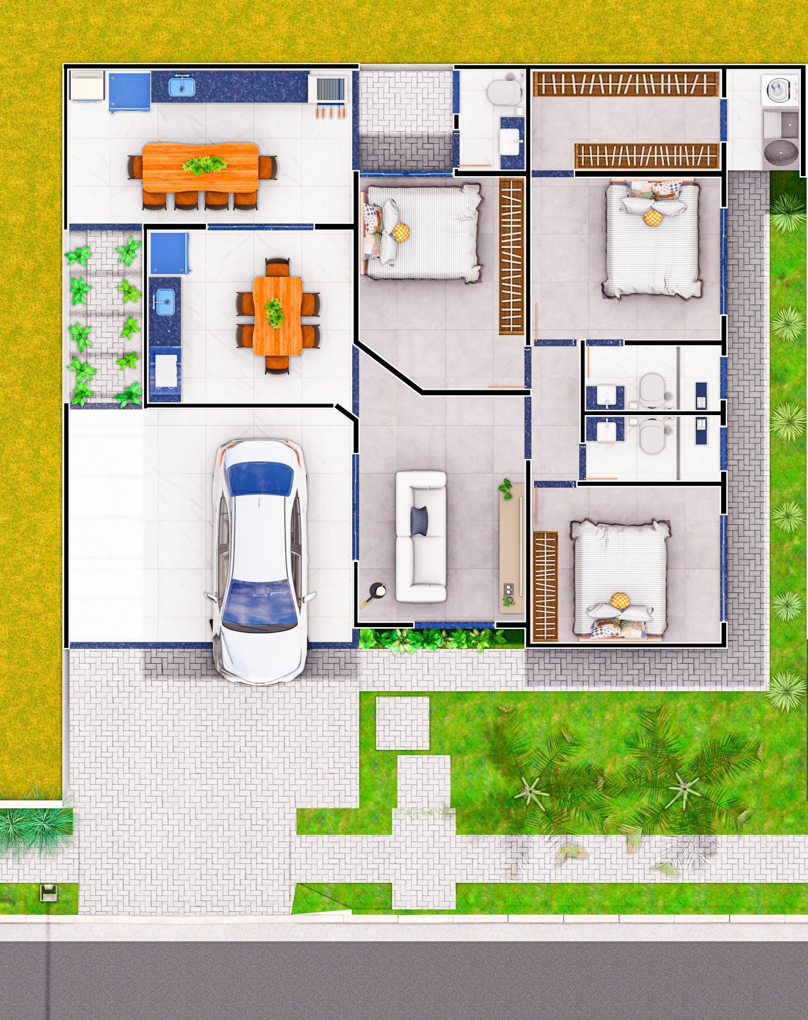 Projeto de Casa Esquina 3 Quartos – 117m² – EP 19